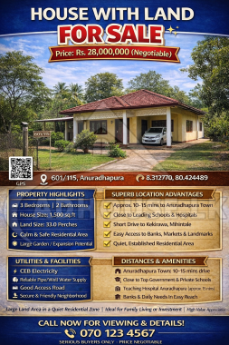 The property is strategically located with easy access to Anuradhapura town and major facilities, making daily life convenient and comfortable.