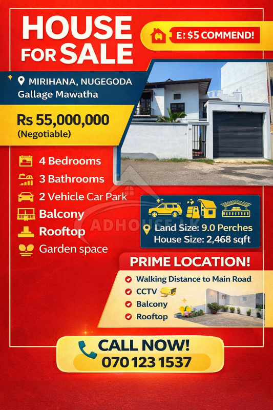 💖 This exceptional property offers space, security, convenience, and investment value all in one place. Whether you’re searching for a comfortable family home or a smart real estate investment, this house in Mirihana, Nugegoda is a rare opportunity you shouldn’t miss!