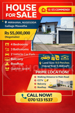 Discover a perfect blend of comfort, elegance, and prime location with this beautifully designed two-story home situated in the highly residential and peaceful area of Mirihana, Nugegoda. This stunning property is ideal for families looking for a spacious dream home or investors searching for a valuable property in a prime location suitable for business purposes as well. 🌿🏢