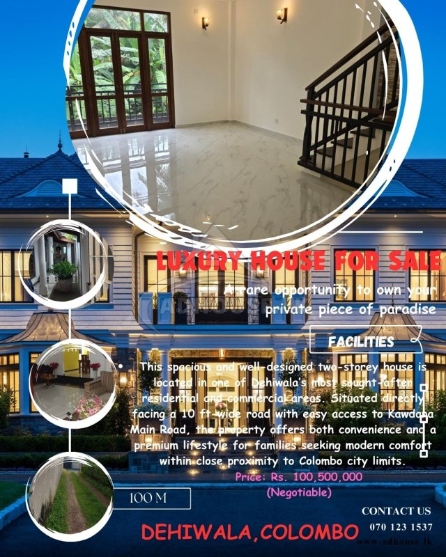 This spacious and well-designed two-storey house is located in one of Dehiwalaโ€™s most sought-after residential and commercial areas. Situated directly facing a 10 ft-wide road with easy access to Kawdana Main Road, the property offers both convenience and a premium lifestyle for families seeking modern comfort within close proximity to Colombo city limits.
